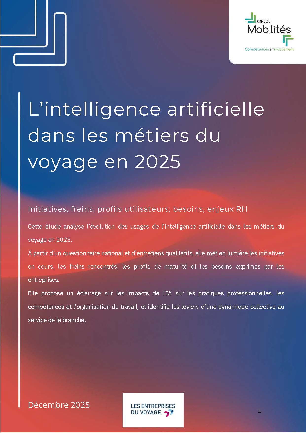 La branche des opérateurs de voyage et OPCO Mobilités publient leur étude 2025 sur l'intelligence artificielle dans les métiers du voyage. Menée auprès de 130 professionnels du secteur et enrichie d'entretiens qualitatifs, cette étude dresse un état des lieux de l'adoption de l'IA dans la branche. Si l'IA s'impose désormais comme un outil utile et applicable aux métiers du voyage, la montée en compétence collective reste le défi majeur pour accompagner durablement cette évolution.